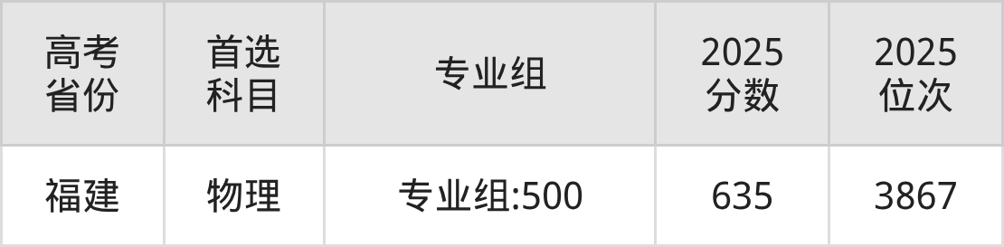 | 高考 省份 | 专业组 | 选科要求 | 2025 分数 | 2025 位次 |