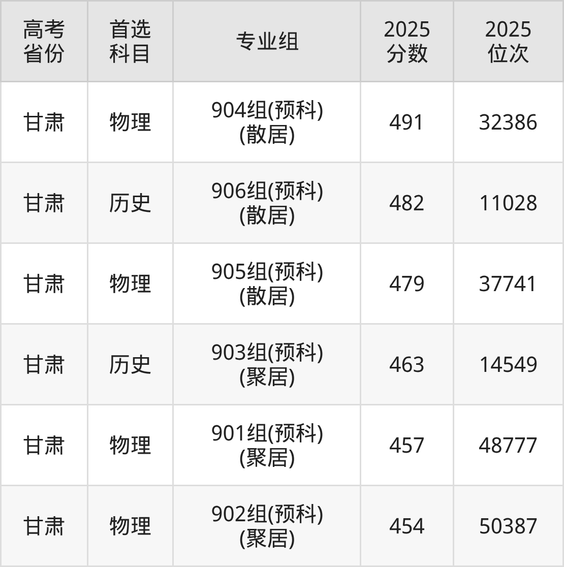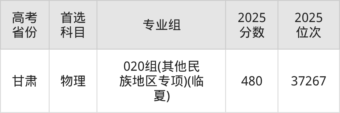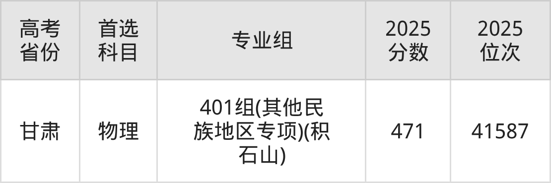 | 高考 省份 | 专业组 | 选科要求 | 2025 分数 | 2025 位次 |