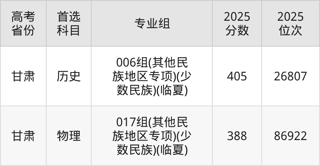 | 甘肃 | 026组 | 物理+不限 | 325 | 111013 |