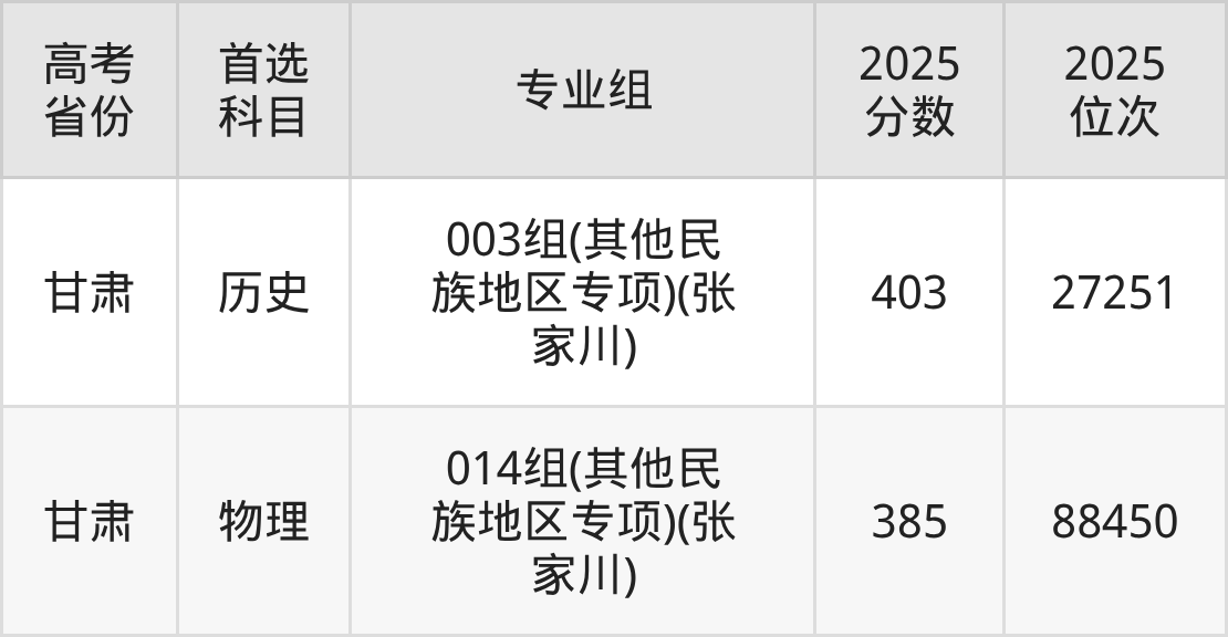 | 甘肃 | 012组 | 物理+不限 | 414 | 72726 |