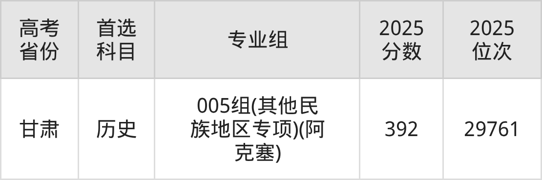 以2025年甘肃高考为例,甘肃林业职业技术大学其他民族地区专项、阿克塞历史类的最低分是392分、普通专科批历史类的最低分是306分。与普通专科批相比,其他民族地区专项、阿克塞的最低分升高了86分。