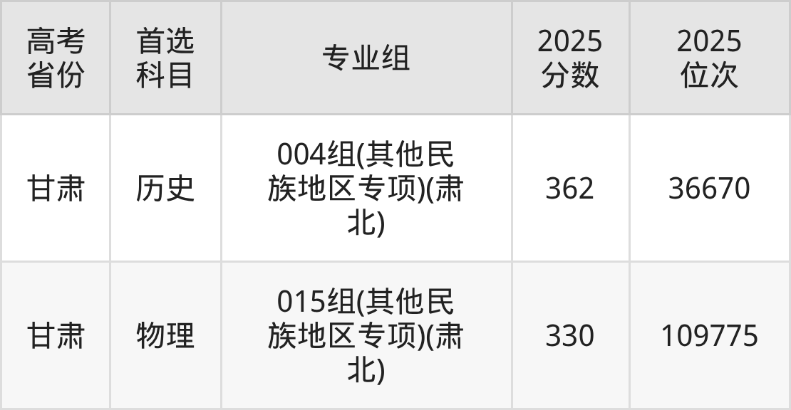 以2025年甘肃高考为例,甘肃林业职业技术大学其他民族地区专项、肃南物理类的最低分是372分、普通专科批物理类的最低分是325分。与普通专科批相比,其他民族地区专项、肃南的最低分升高了47分。