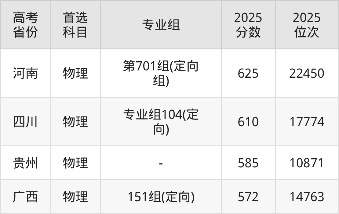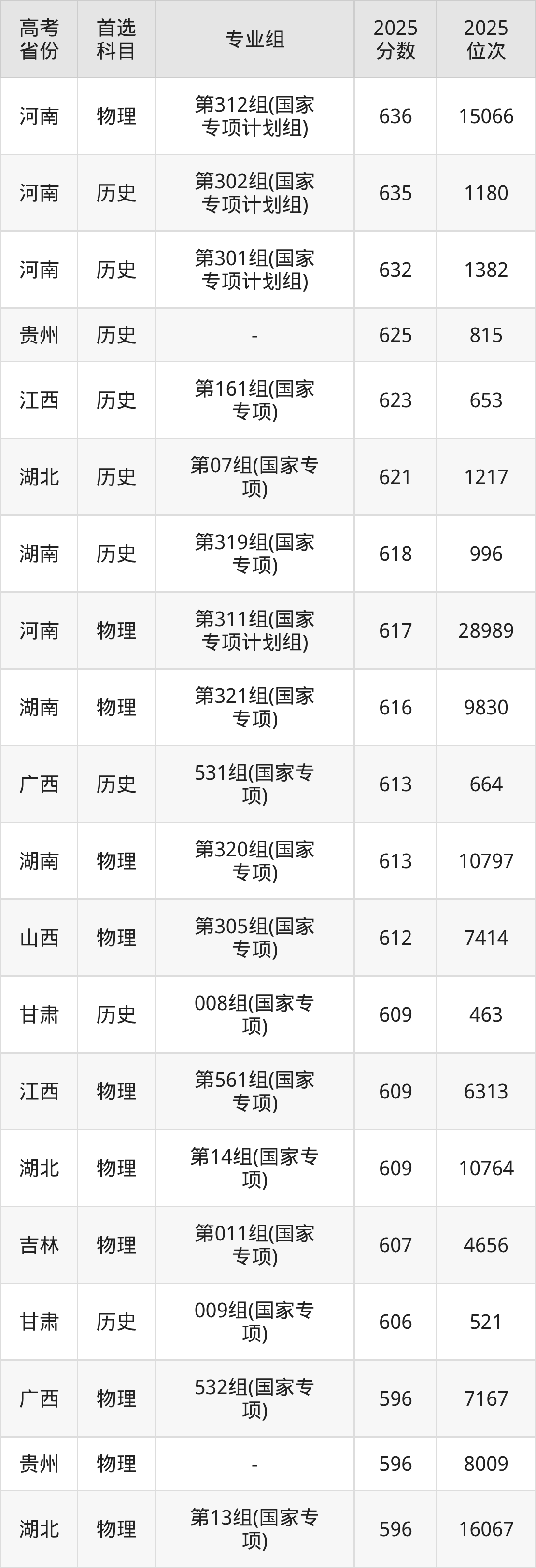 河南:第901组(单列专业组)2025年最低605分、5105位,第902组(单列专业组)2025年最低615分、30812位