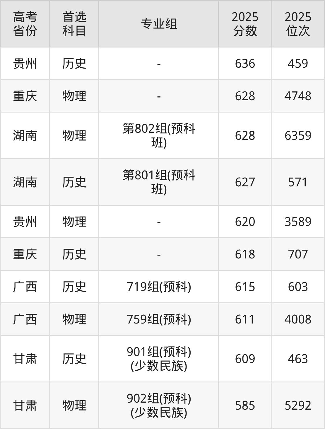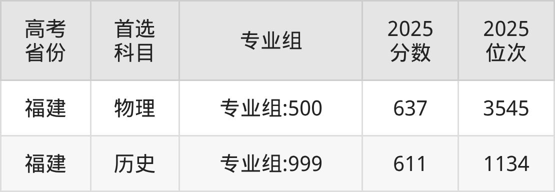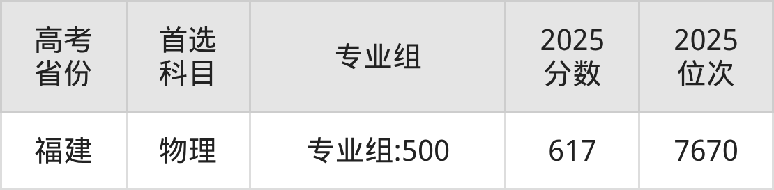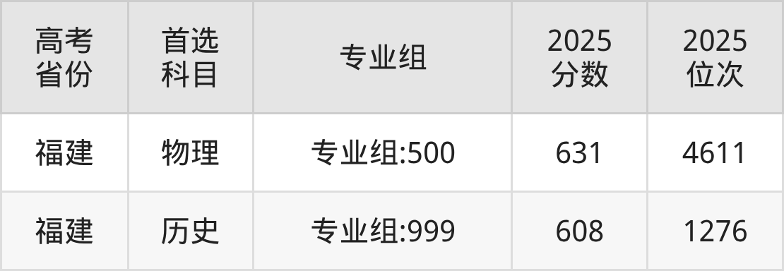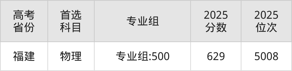 | 高考 省份 | 专业组 | 选科要求 | 2025 分数 | 2025 位次 |