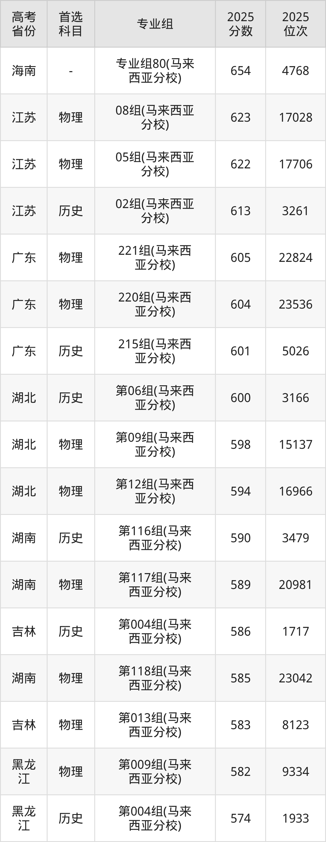 下方图片展示的是厦门大学试验班2025年录取分数线汇总: