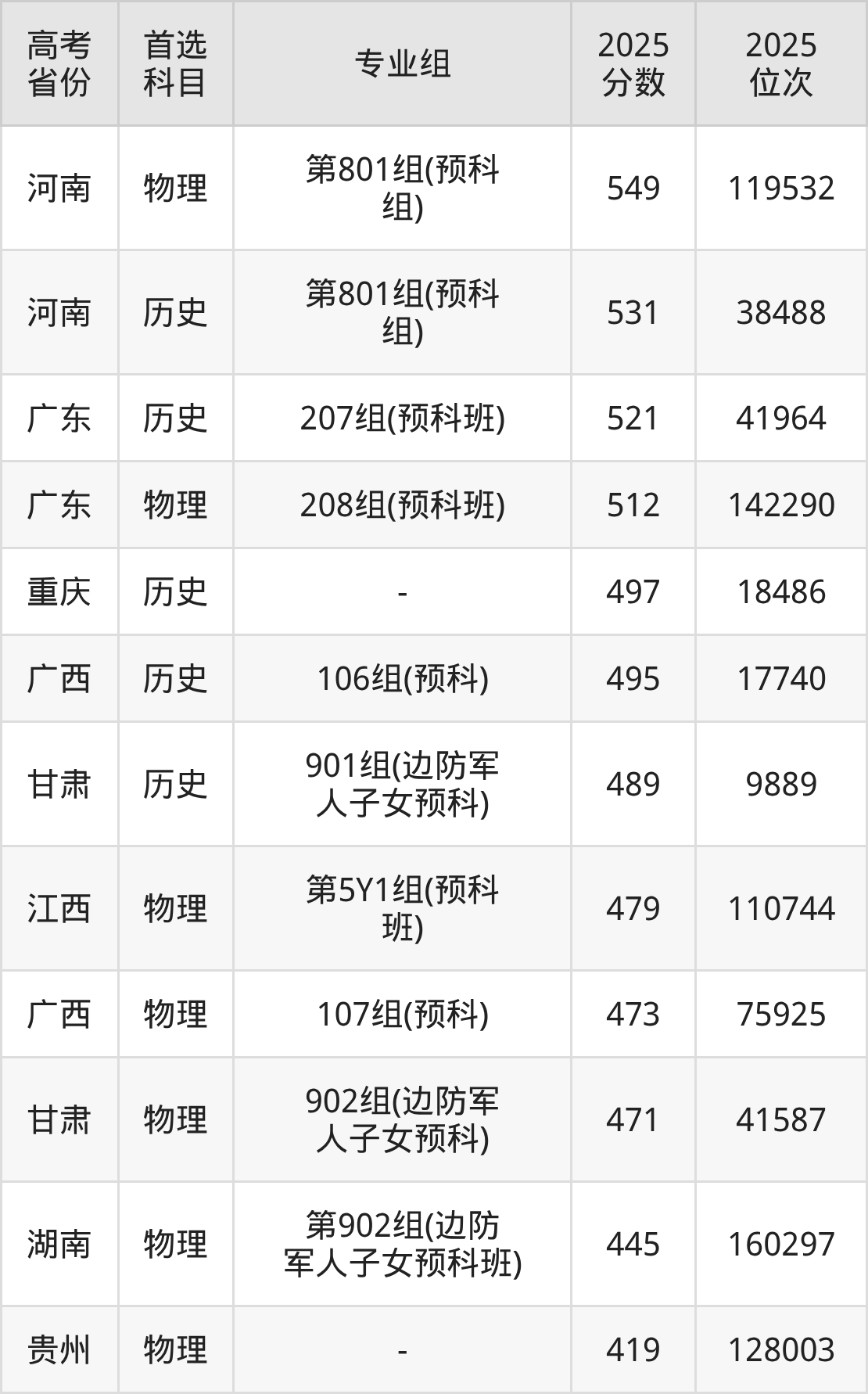下方图片展示的是西华大学少数民族预科班2025年录取分数线汇总: