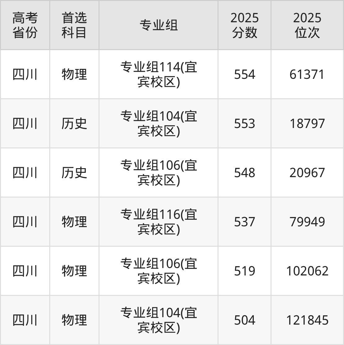 | 四川 | 专业组11 3 | 物理+化学 | 550 | 65638 |
