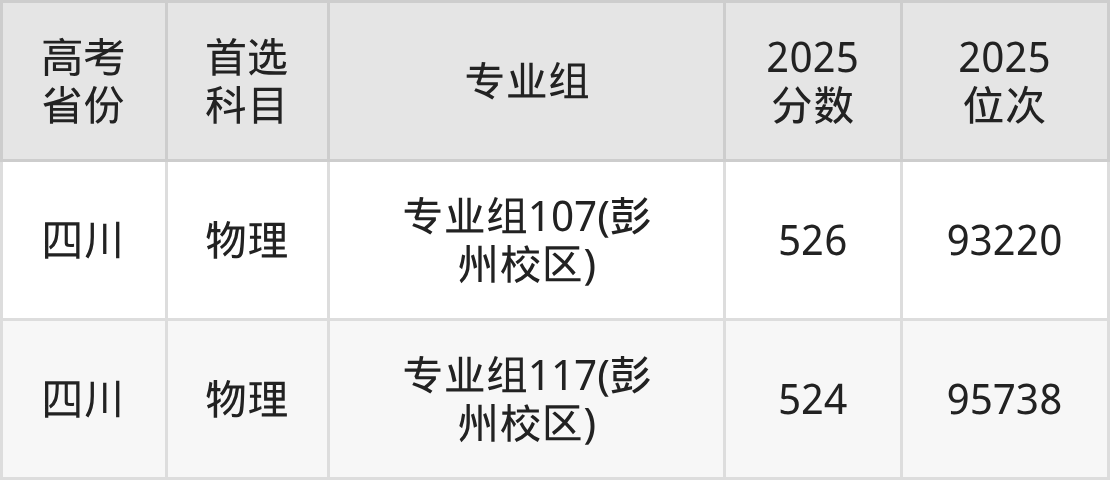 | 高考 省份 | 专业组 | 选科要求 | 2025 分数 | 2025 位次 |
