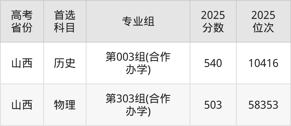 | 高考 省份 | 专业组 | 选科要求 | 2025 分数 | 2025 位次 |