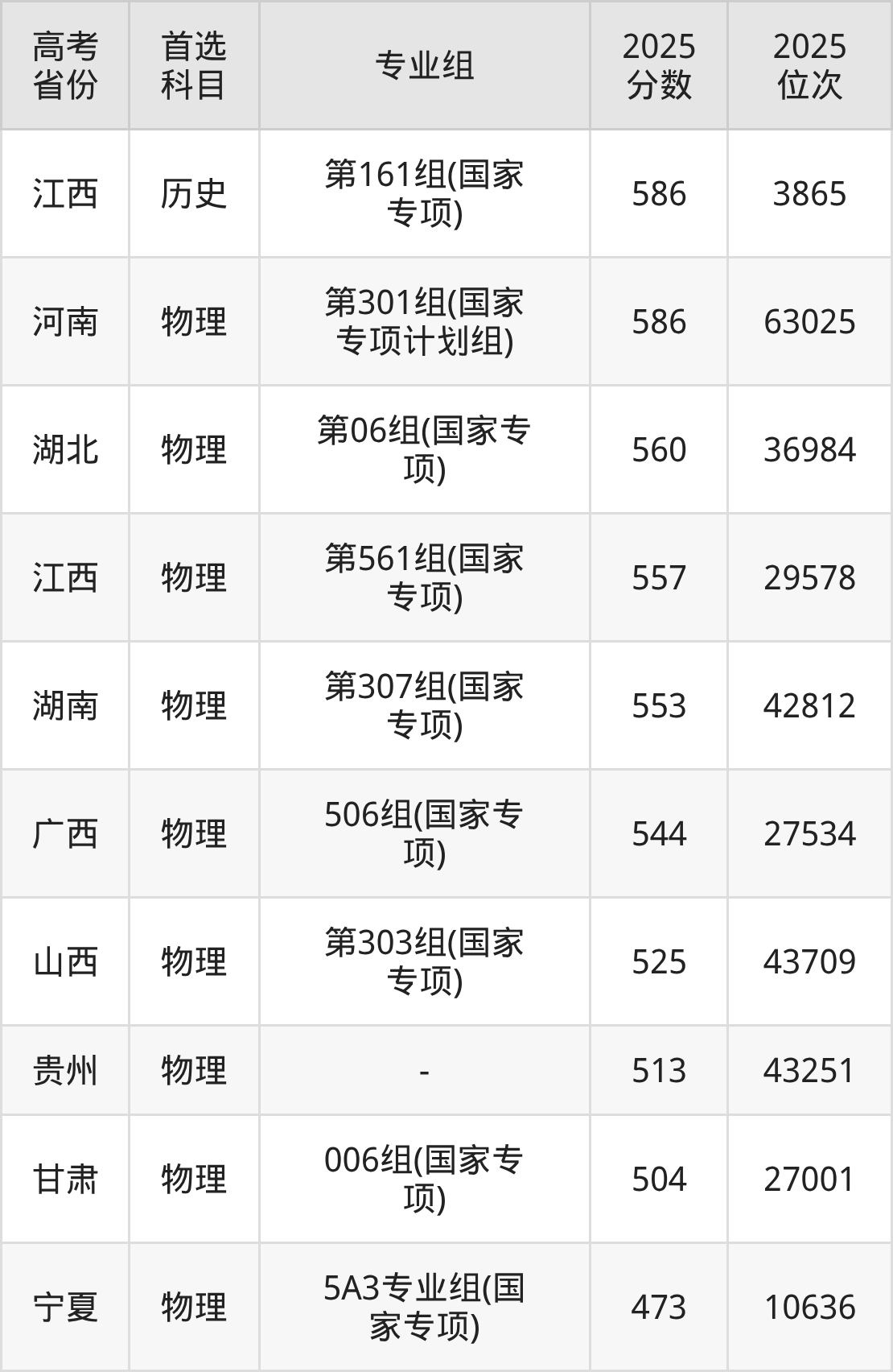| 高考 省份 | 专业组 | 选科要求 | 2025 分数 | 2025 位次 |