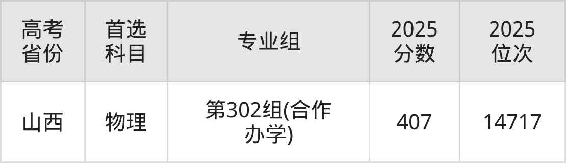 | 高考 省份 | 专业组 | 选科要求 | 2025 分数 | 2025 位次 |