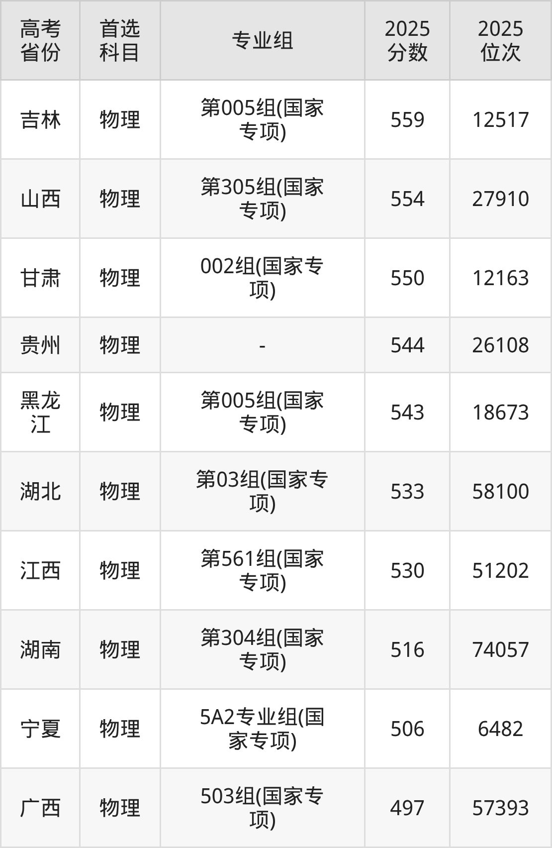 | 高考 省份 | 专业组 | 选科要求 | 2025 分数 | 2025 位次 |
