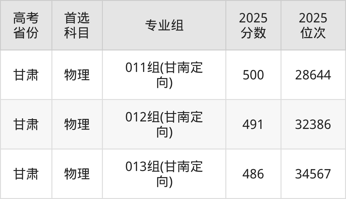 | 甘肃 | 003组 | 物理+不限 | 413 | 73271 |
