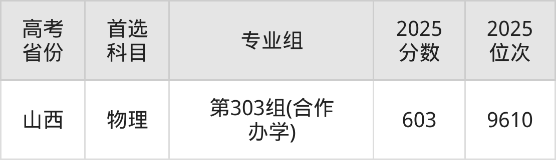 | 高考 省份 | 专业组 | 选科要求 | 2025 分数 | 2025 位次 |