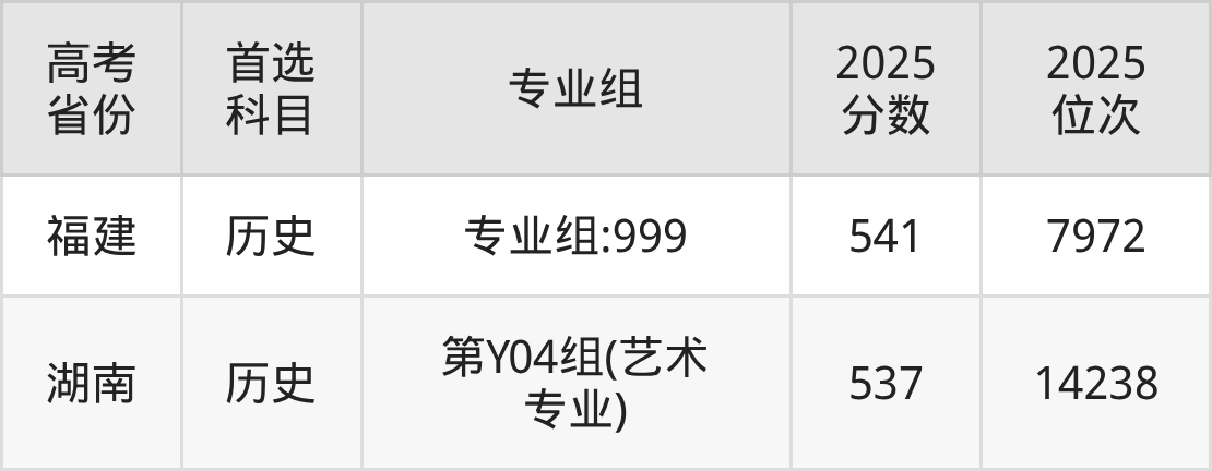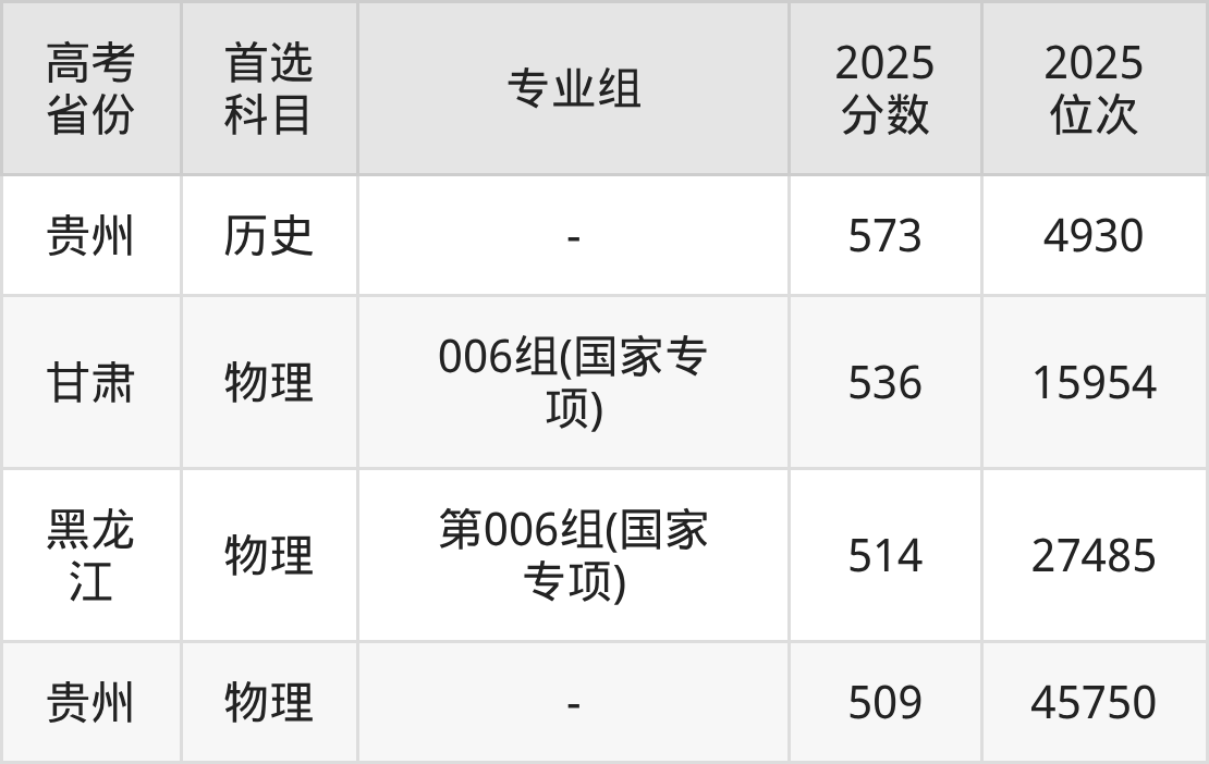 | 高考 省份 | 专业组 | 选科要求 | 2025 分数 | 2025 位次 |