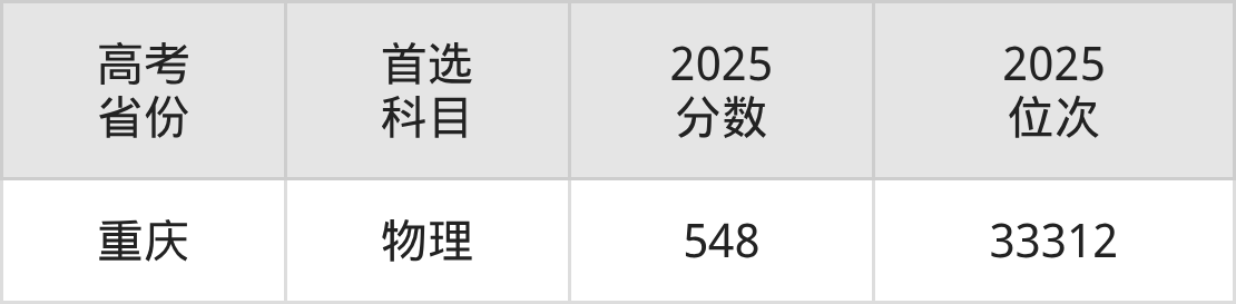 | 高考 省份 | 专业组 | 选科要求 | 2025 分数 | 2025 位次 |