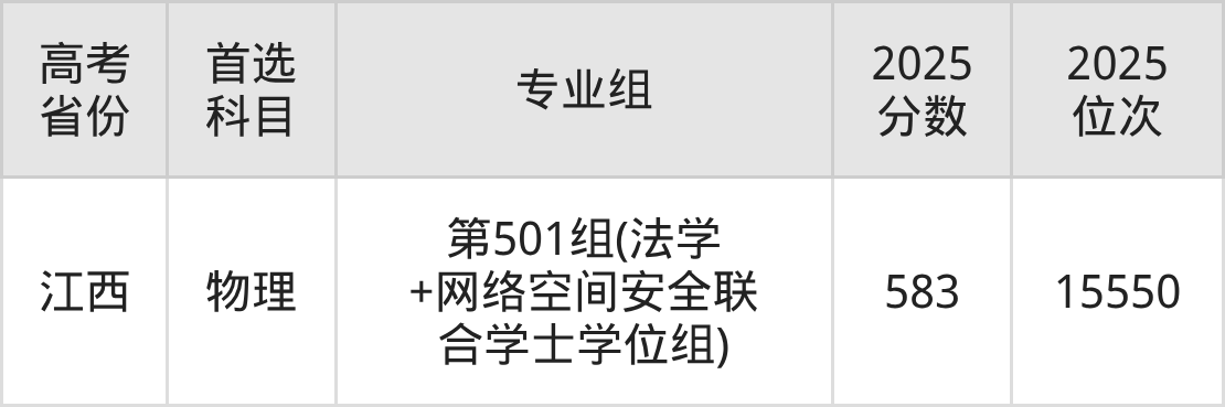以2025年江西高考为例,重庆邮电大学法学+网络空间安全联合学士学位组物理类的最低分是583分、普通本科批物理类的最低分是582分。与普通本科批相比,法学+网络空间安全联合学士学位组的最低分升高了1分。
