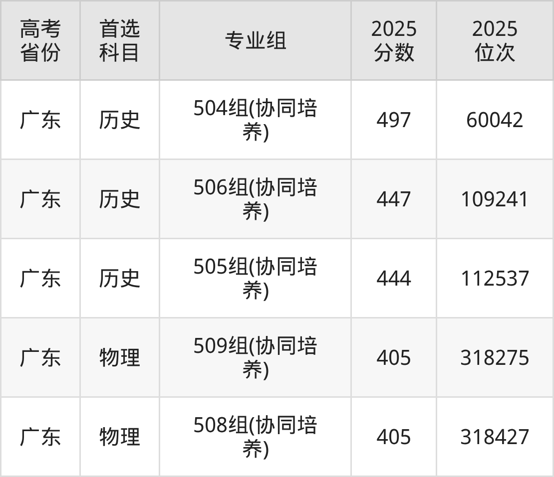 下方图片展示的是广东行政职业学院协同培养2025年录取分数线汇总: