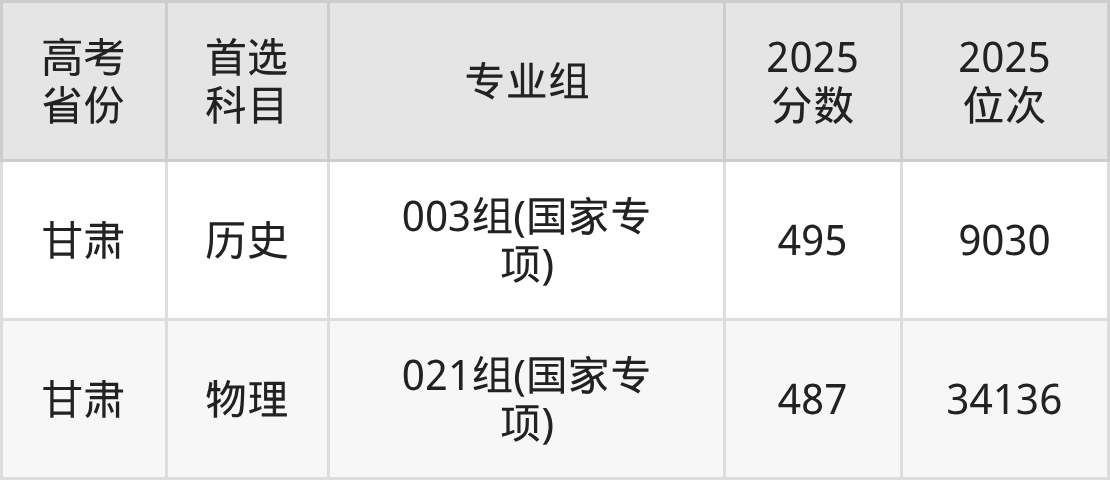 | 甘肃 | 001组 | 历史+不限 | 490 | 9734 |