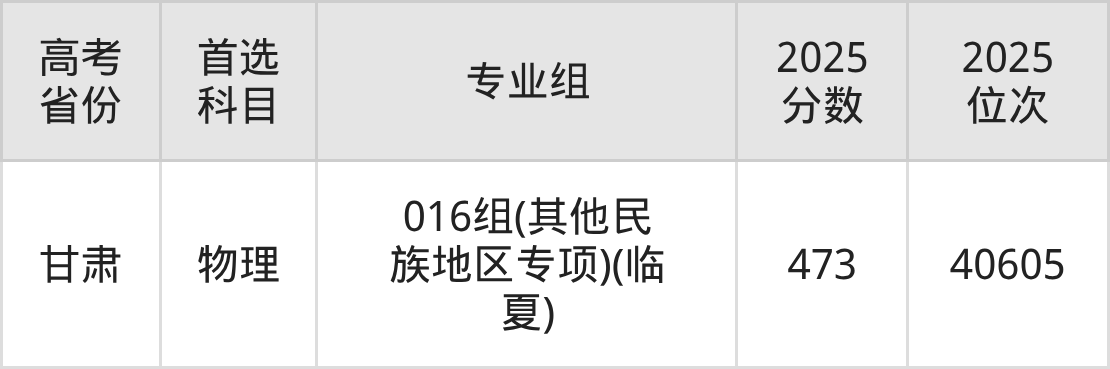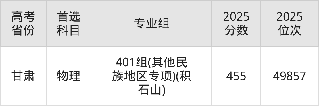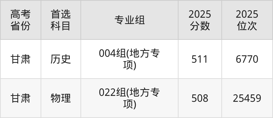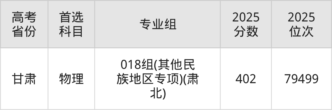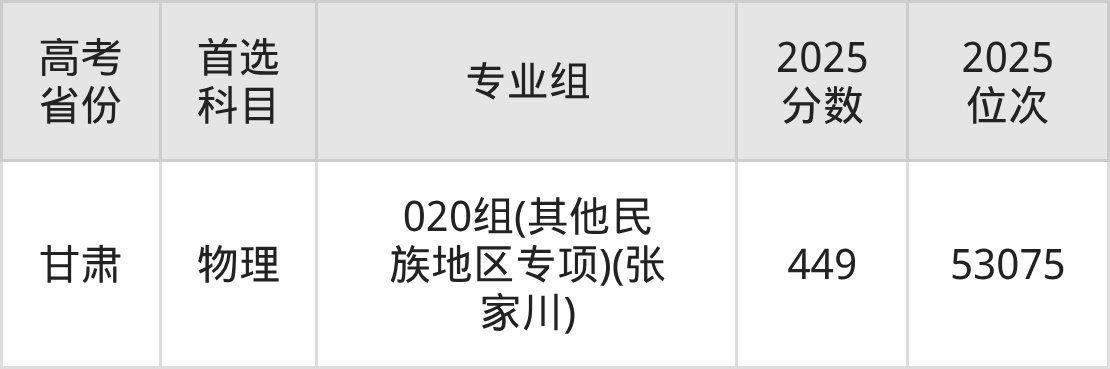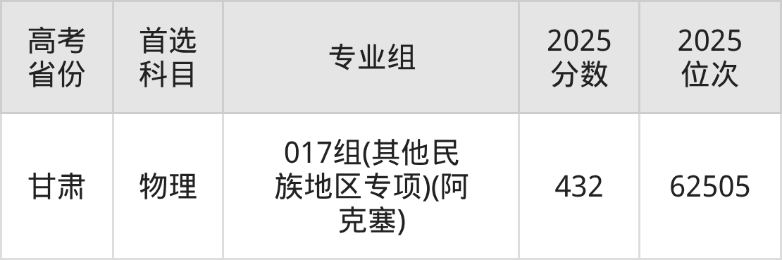 | 高考 省份 | 专业组 | 选科要求 | 2025 分数 | 2025 位次 |