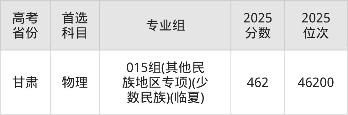 | 甘肃 | 006组 | 物理+不限 | 512 | 23940 |
