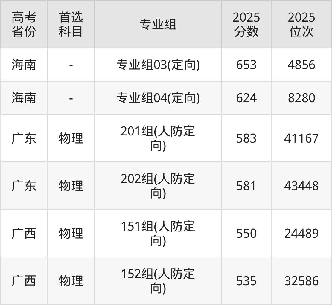 陆军工程大学2025年录取分数线已经公布!在全国各省本科批最低分是486分,一段最低分是557分,定向最低分是535分。