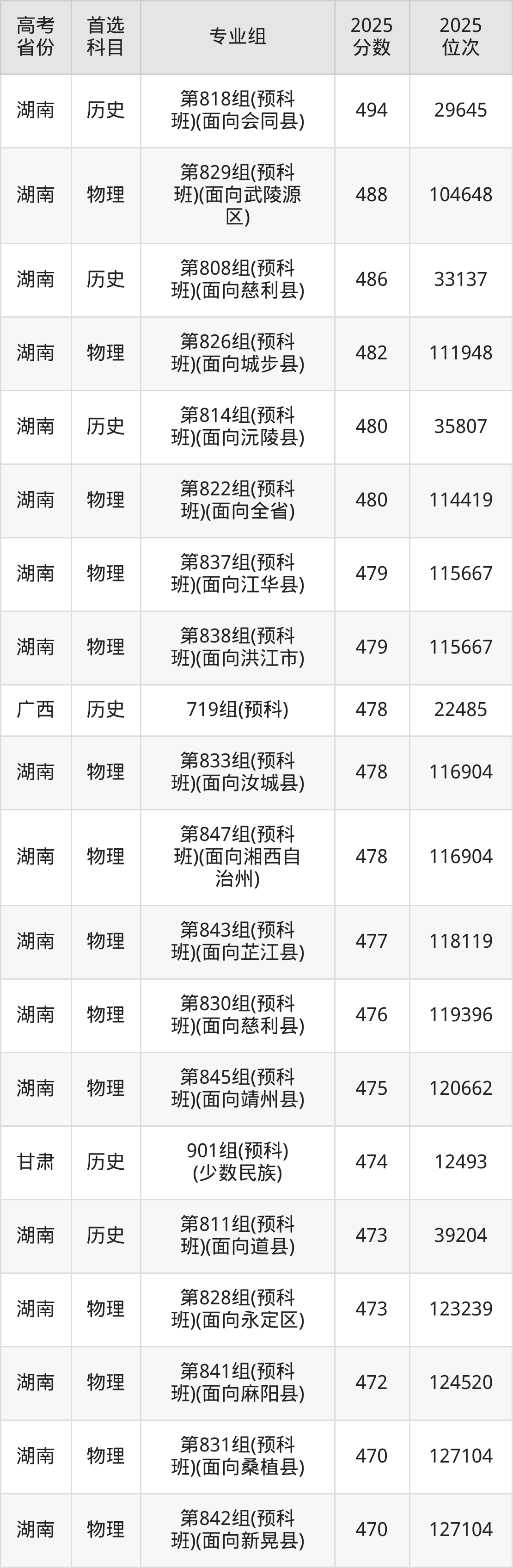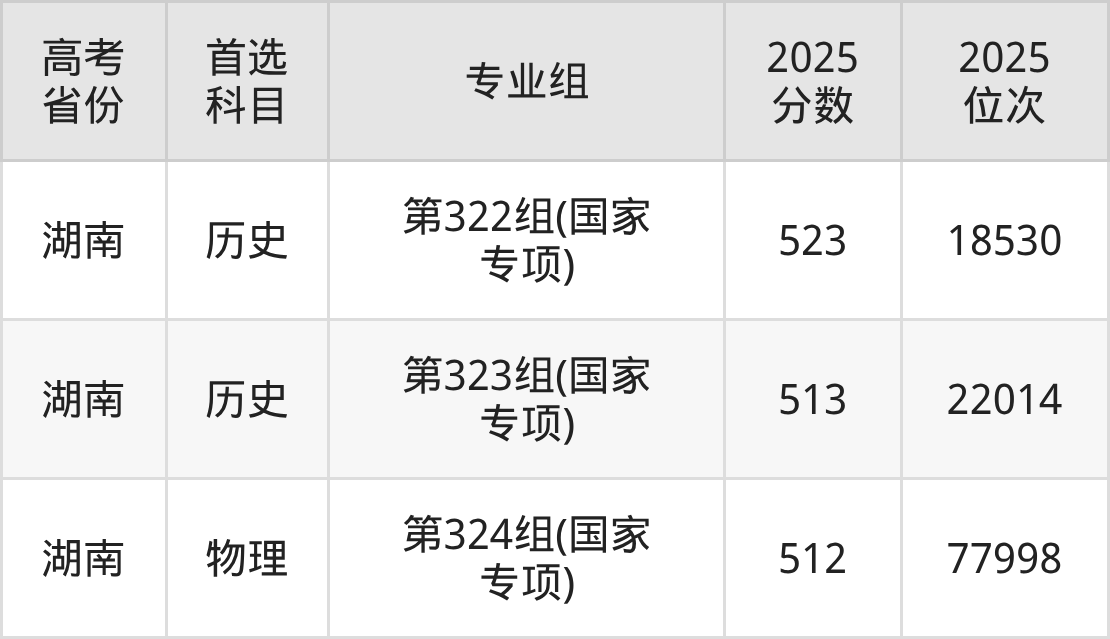 下方图片展示的是吉首大学国家专项2025年录取分数线汇总: