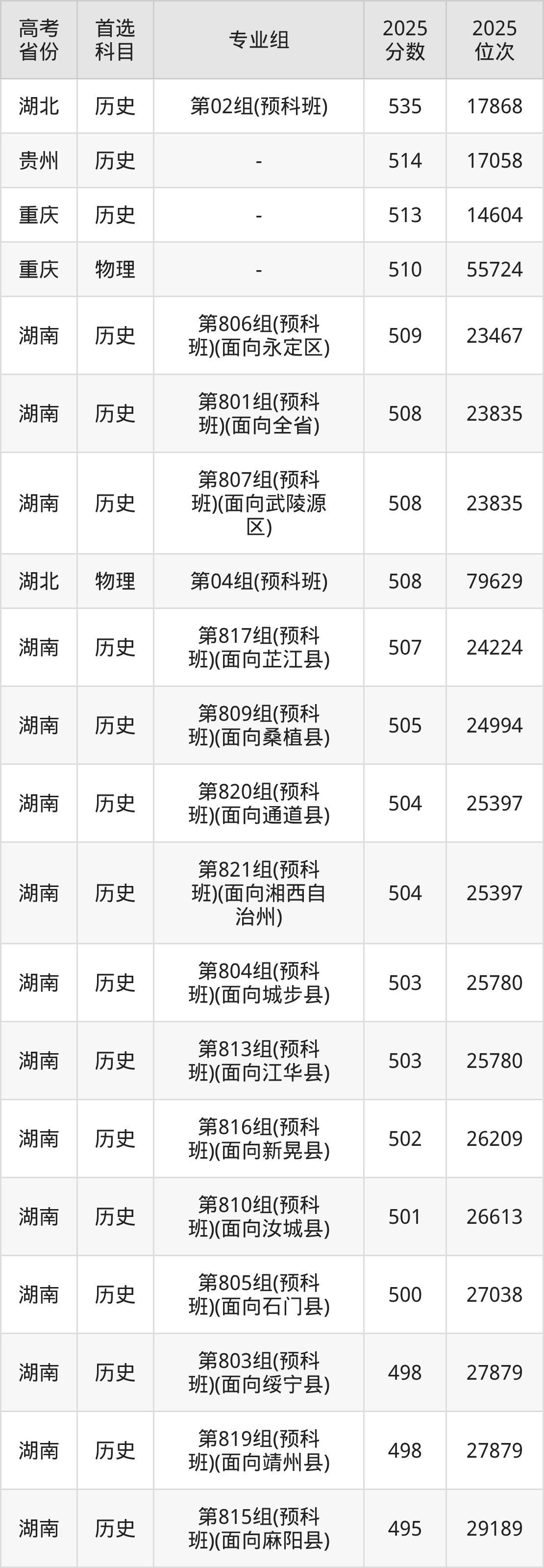 下方表格是吉首大学2025年在全国各省普通本科批的录取分数线汇总: