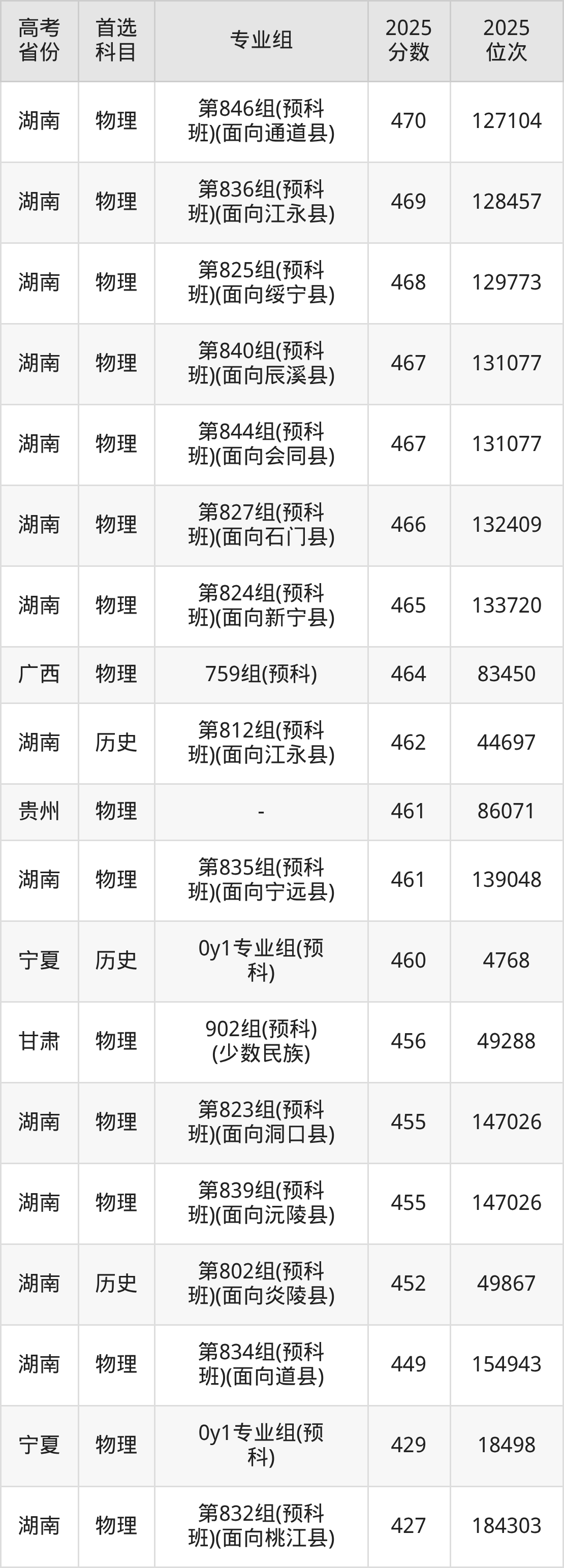 下方图片展示的是吉首大学地方专项2025年录取分数线汇总: