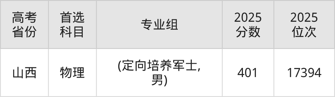 | 高考 省份 | 专业组 | 选科要求 | 2025 分数 | 2025 位次 |