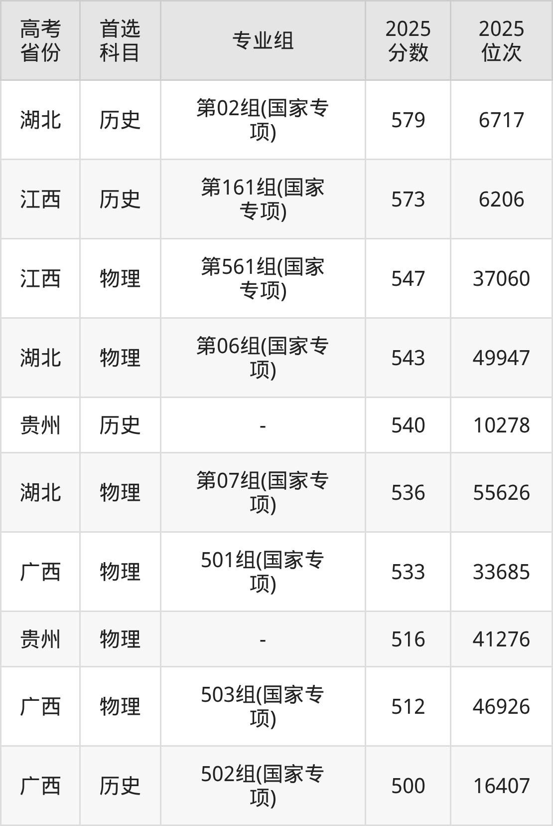 | 高考 省份 | 专业组 | 选科要求 | 2025 分数 | 2025 位次 |