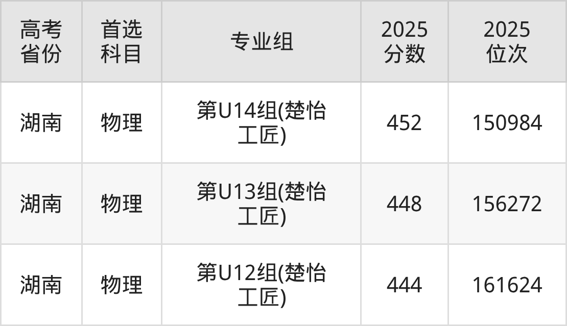以2025年湖南高考为例,湖南科技学院楚怡工匠物理类的最低分是444分、普通本科批物理类的最低分是449分。与普通本科批相比,楚怡工匠的最低分升高了3分。