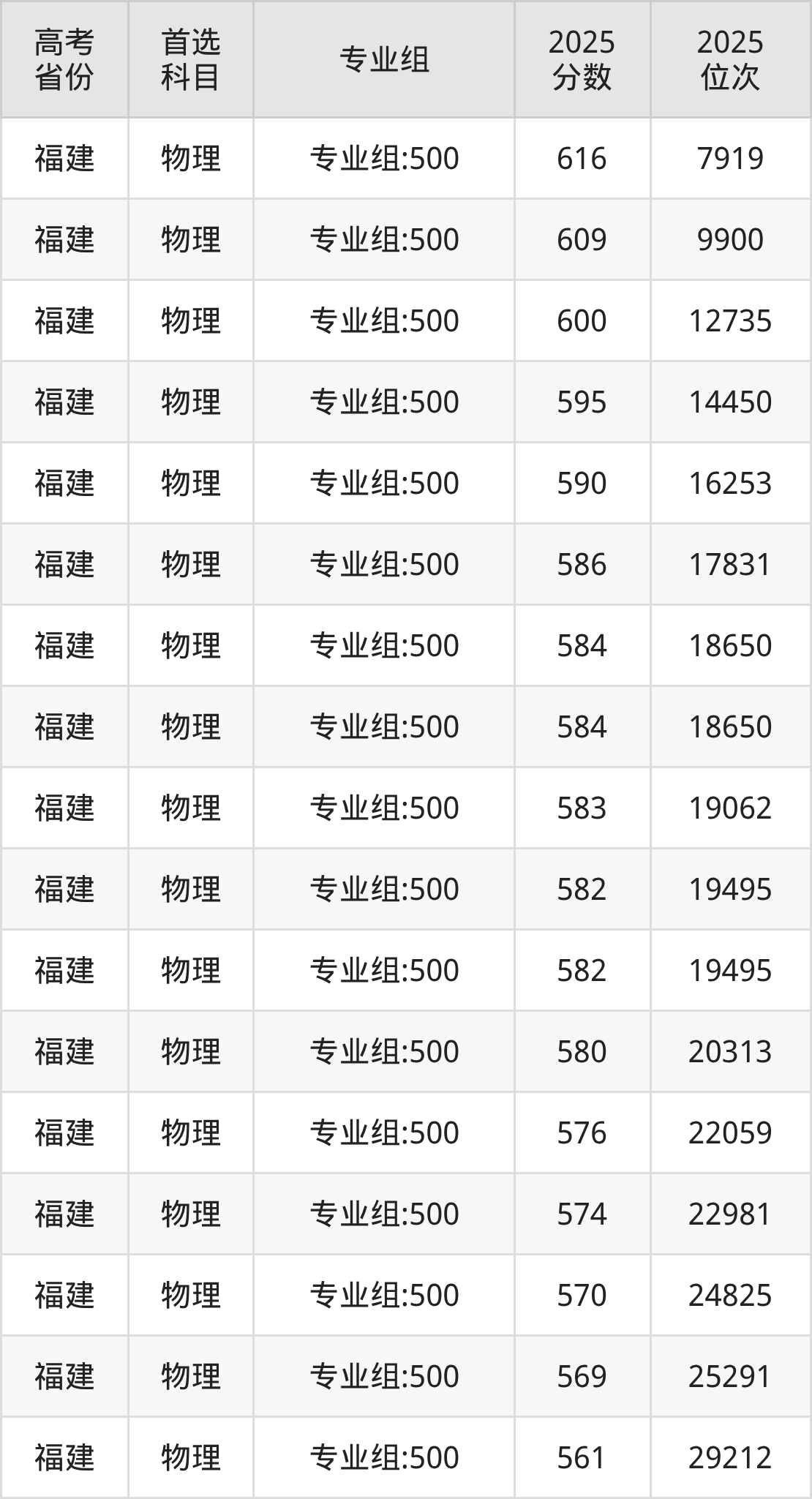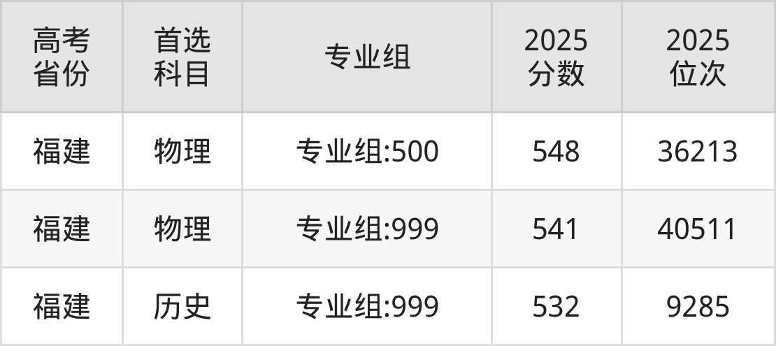 福建:专业组:5002025年最低525分、50881位,专业组:9992025年最低497分、15286位