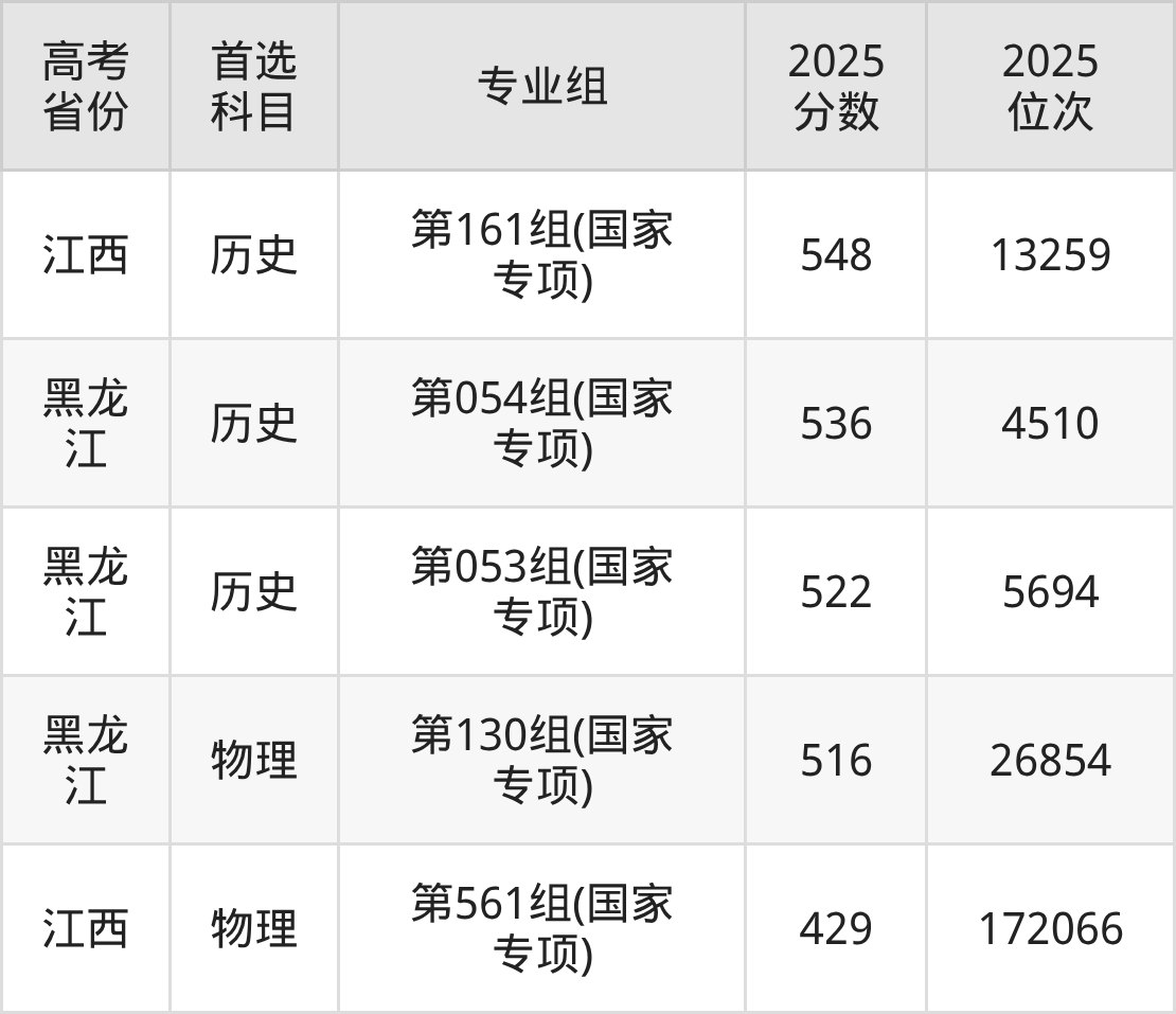 下方图片展示的是哈尔滨师范大学国家专项2025年录取分数线汇总: