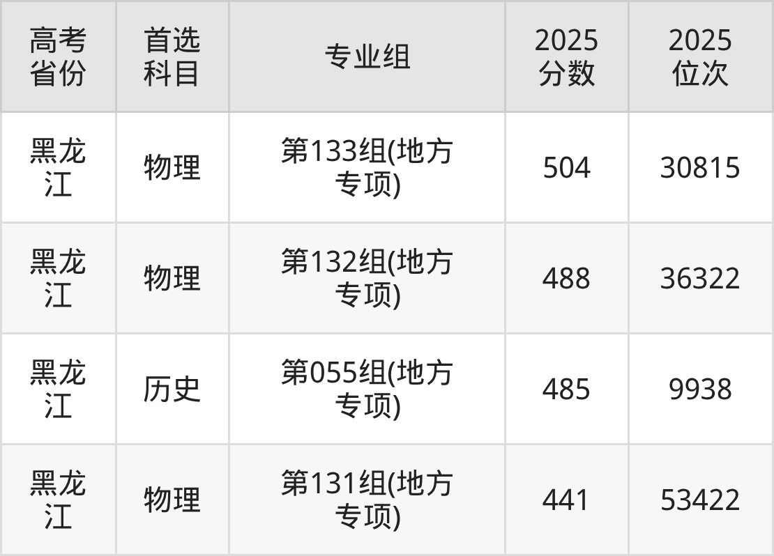 下方图片展示的是哈尔滨师范大学地方专项2025年录取分数线汇总:
