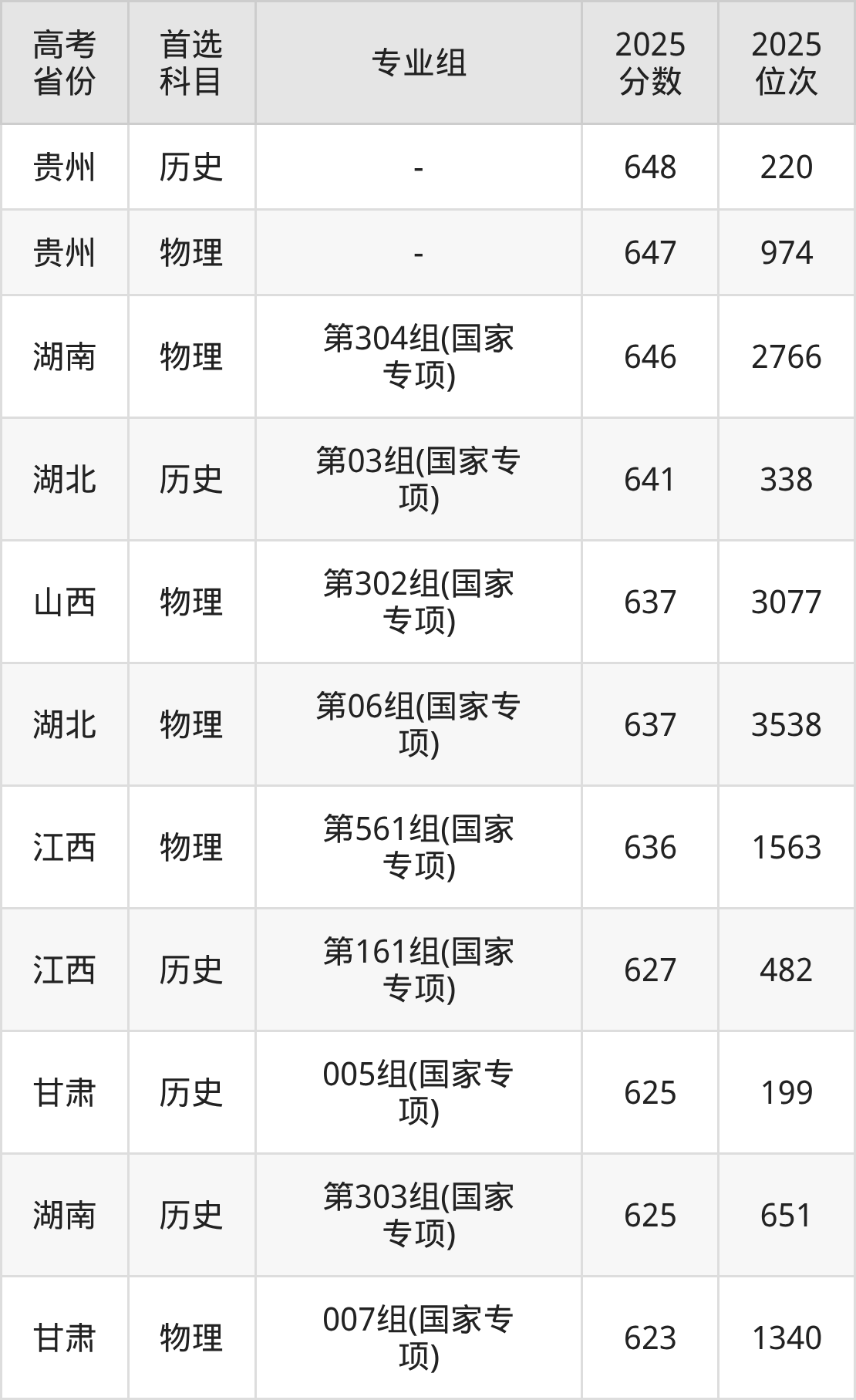 下方图片展示的是南京大学国家专项2025年录取分数线汇总: