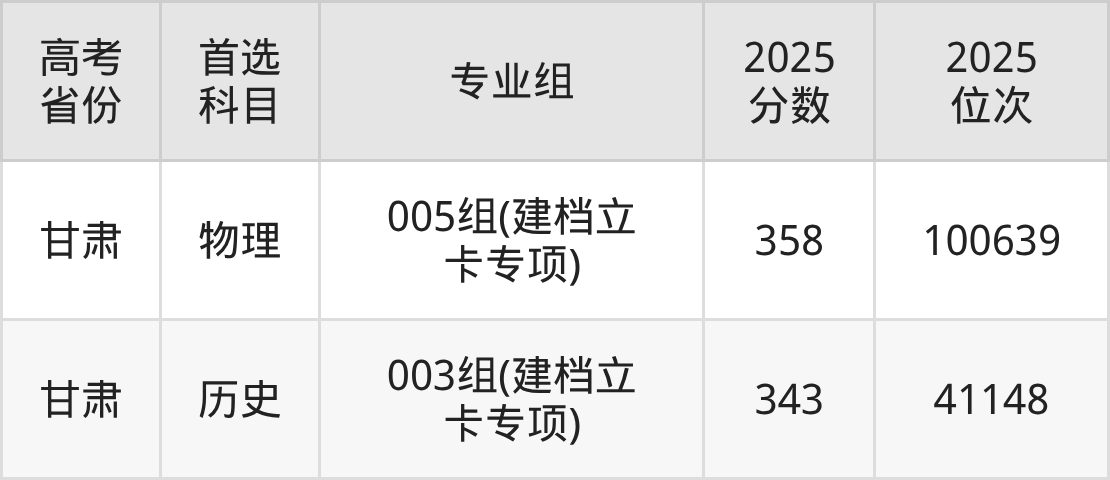 | 高考 省份 | 专业组 | 选科要求 | 2025 分数 | 2025 位次 |