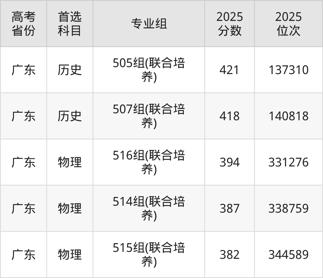 广东:517组(中外合作)2025年最低327分、390604位,518组(中外合作)2025年最低409分、150767位