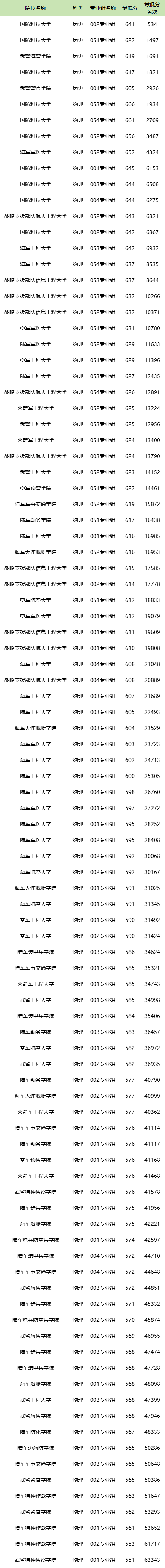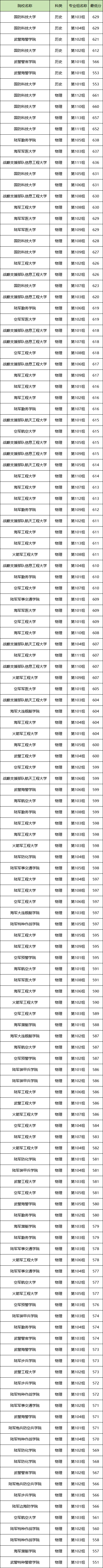 不同院校的招生省份可能存在差异,因此分数线情况也会不同,碍于篇幅限制,这里我们仅列举部分省份的军事类学校分数线信息,以供参考。