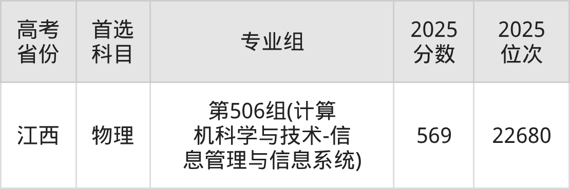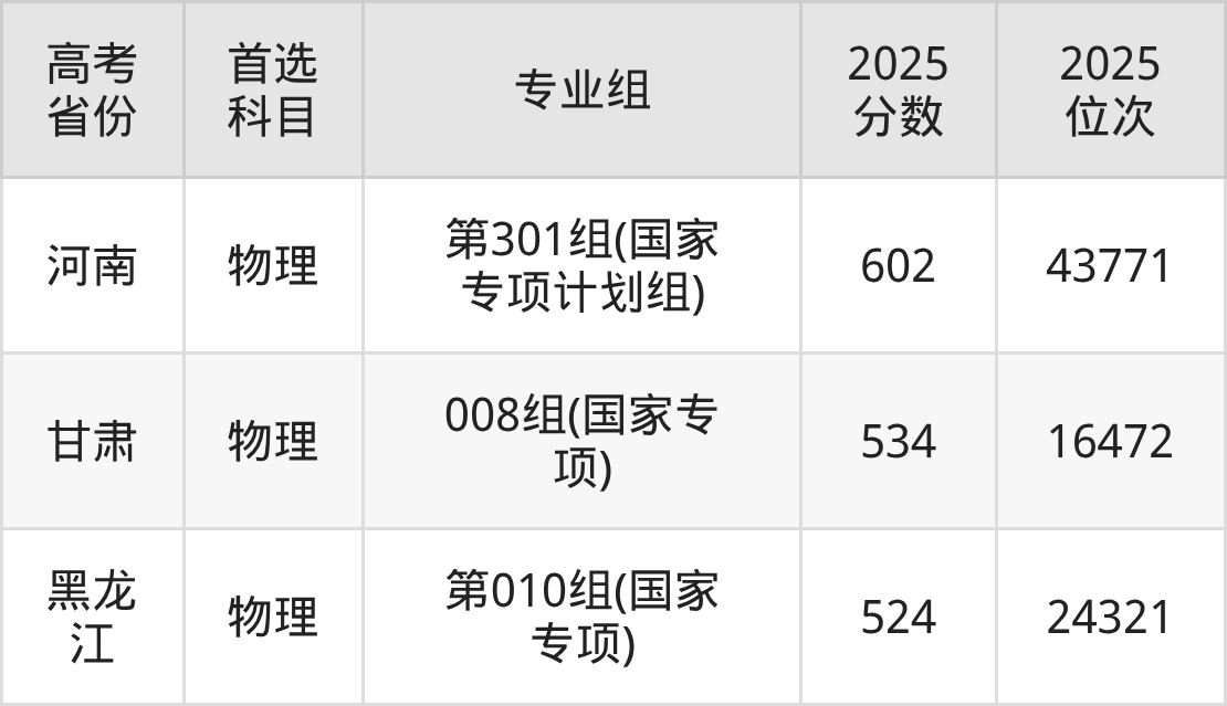 | 高考 省份 | 专业组 | 选科要求 | 2025 分数 | 2025 位次 |