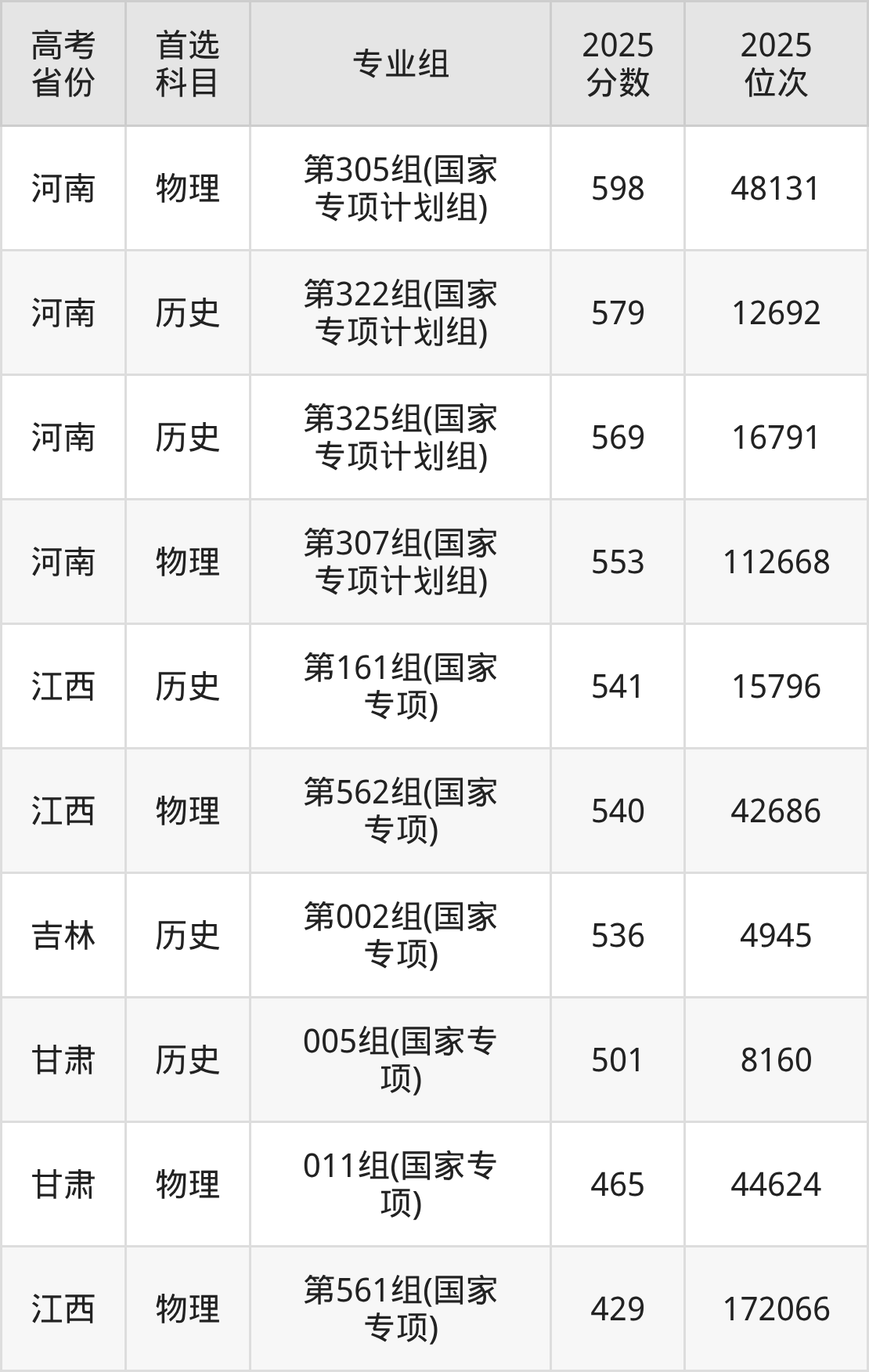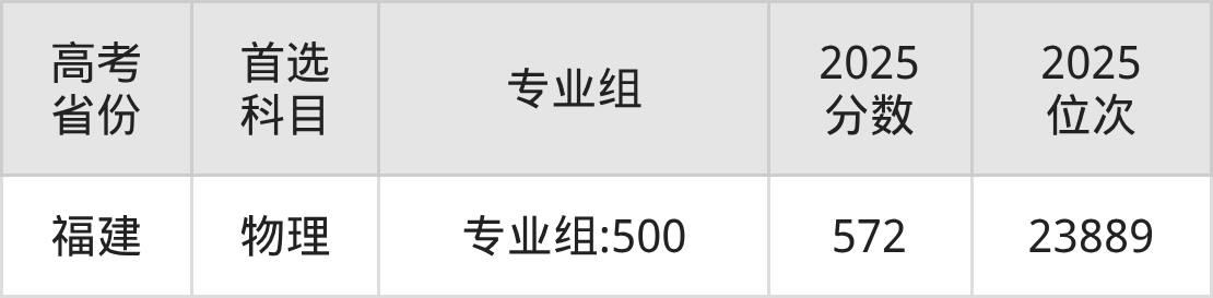 | 高考 省份 | 专业组 | 选科要求 | 2025 分数 | 2025 位次 |