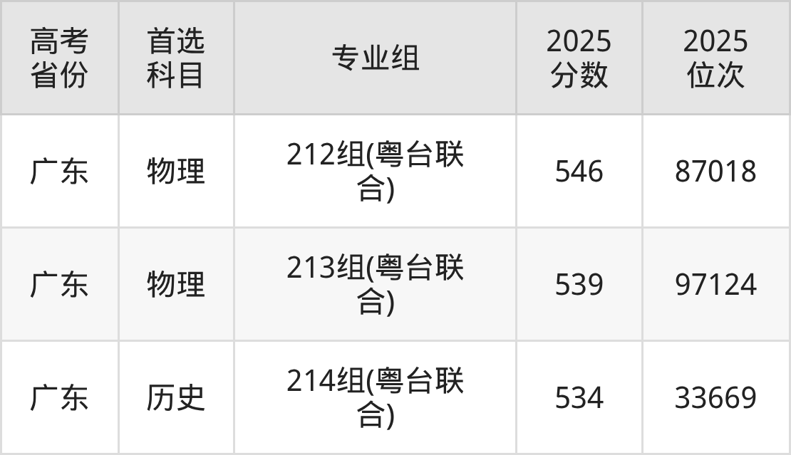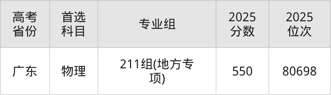 | 高考 省份 | 专业组 | 选科要求 | 2025 分数 | 2025 位次 |
