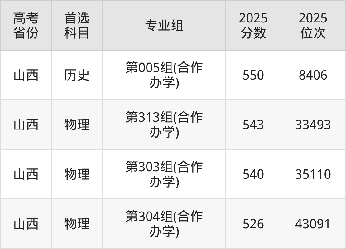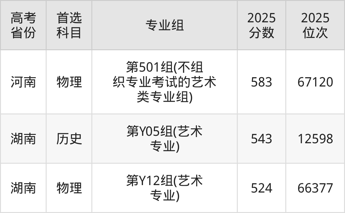 | 高考 省份 | 专业组 | 选科要求 | 2025 分数 | 2025 位次 |