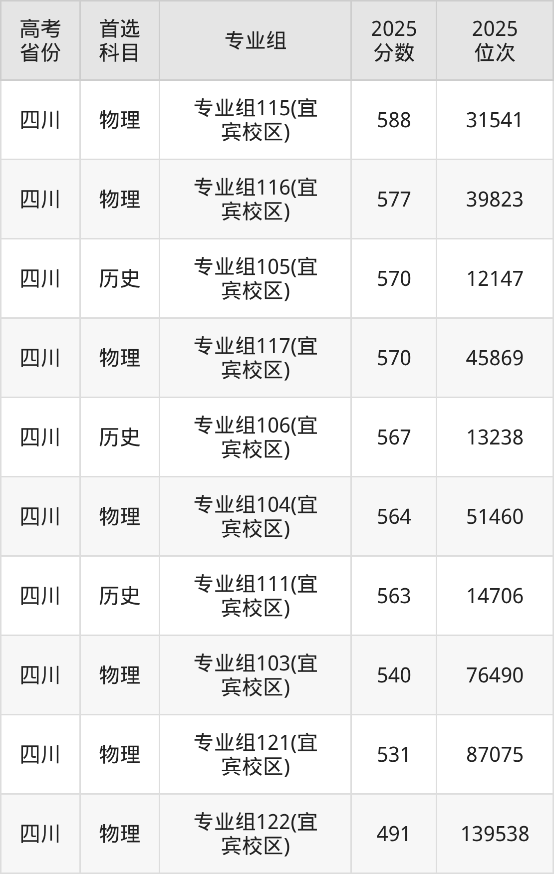 | 四川 | 专业组11 0 | 历史+地理 | 577 | 10008 |