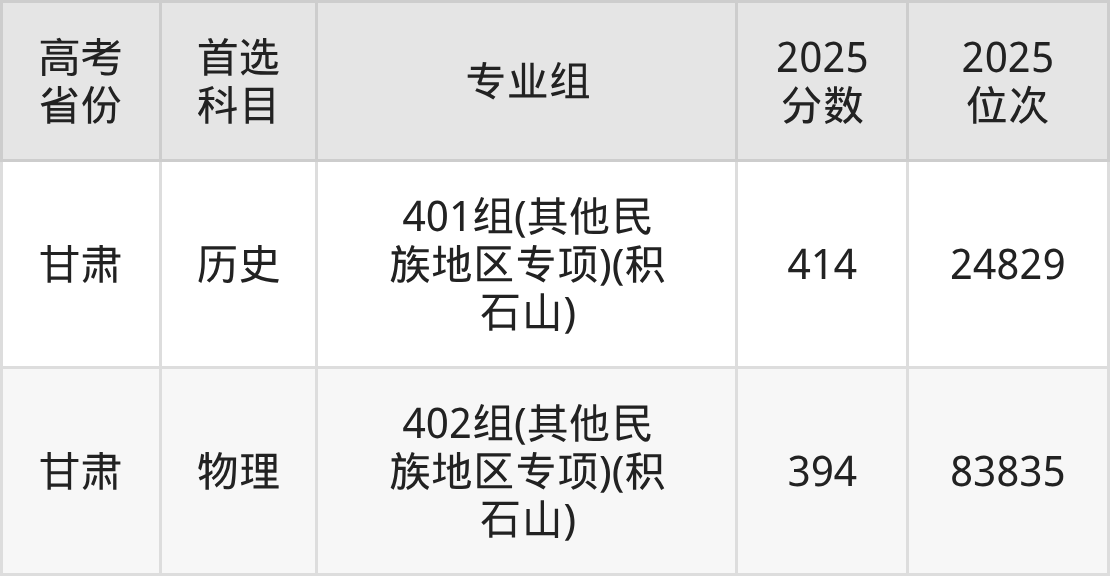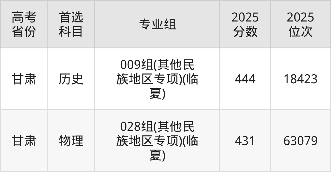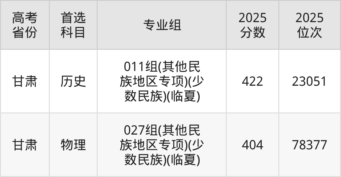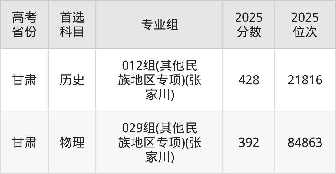 以2025年甘肃高考为例,兰州文理学院其他民族地区专项、临夏历史类的最低分是444分、普通本科批历史类的最低分是451分。与普通本科批相比,其他民族地区专项、临夏的最低分降低了7分。