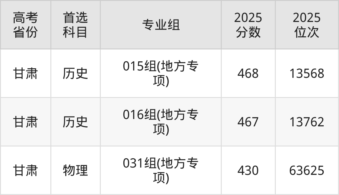 以2025年甘肃高考为例,兰州文理学院地方专项历史类的最低分是467分、普通本科批历史类的最低分是451分。与普通本科批相比,地方专项的最低分升高了16分。