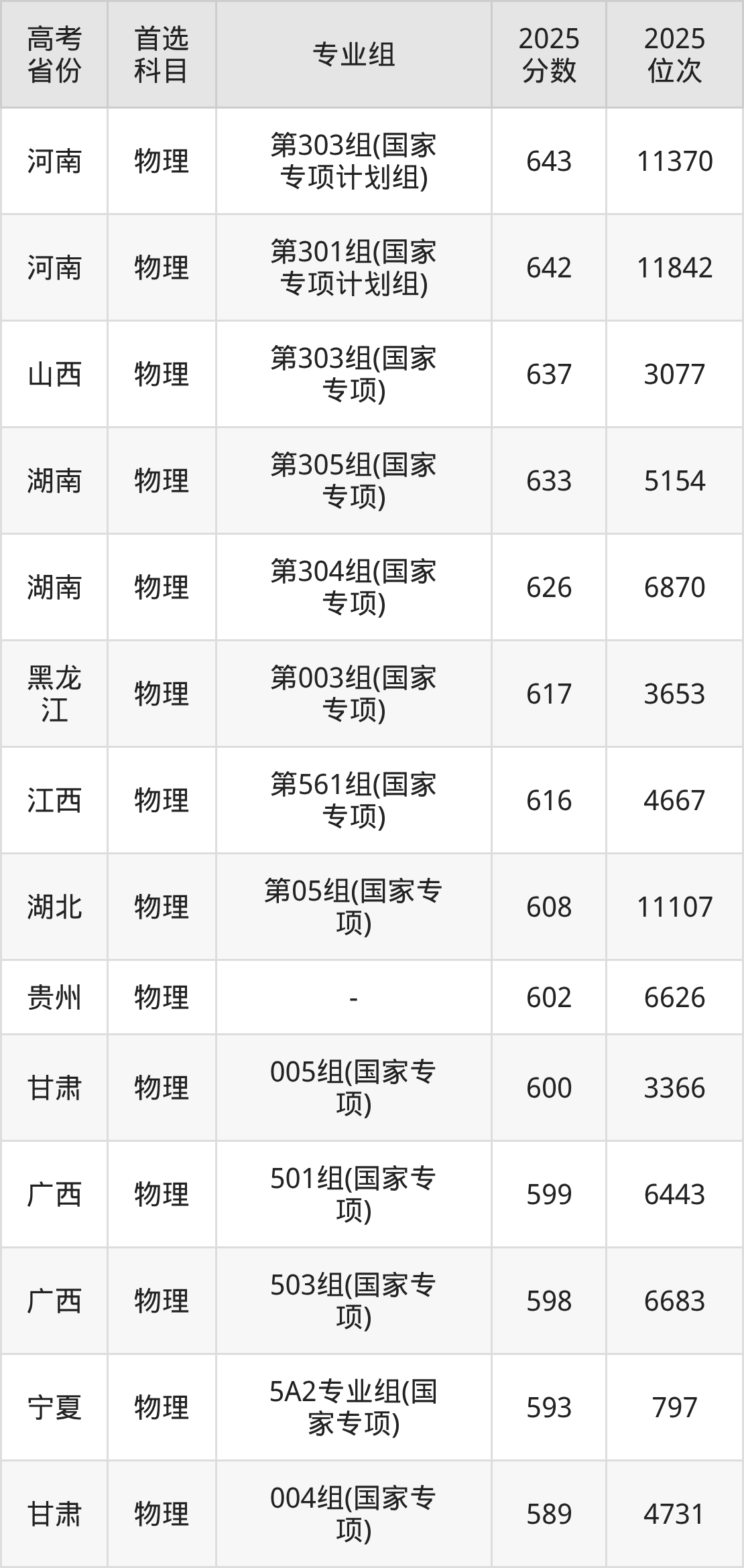 下方图片展示的是东南大学国家专项2025年录取分数线汇总: