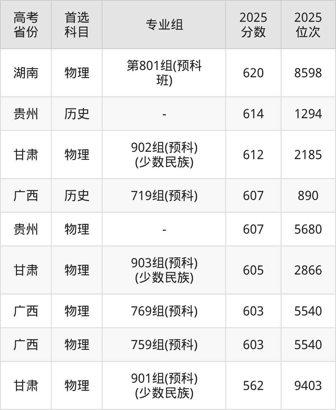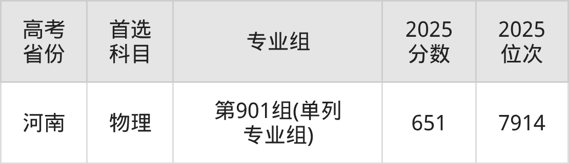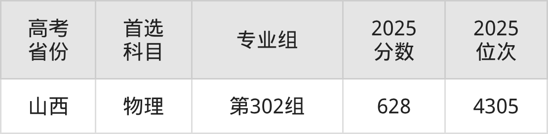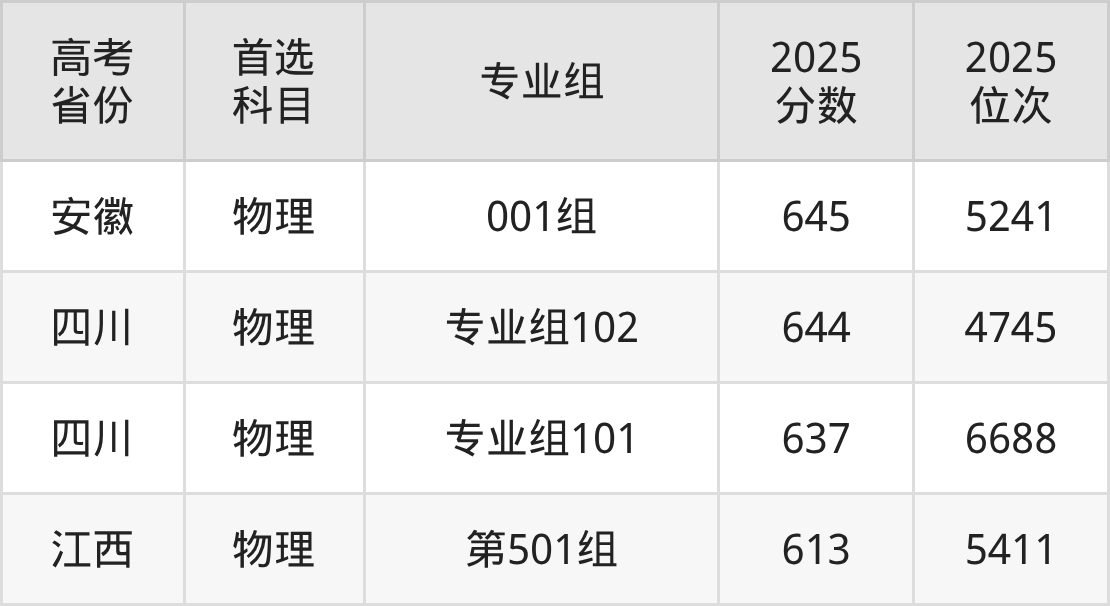| 高考 省份 | 专业组 | 选科要求 | 2025 分数 | 2025 位次 |