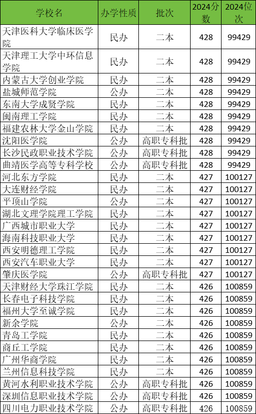 云南理科成绩排名10万能上的大学具体位次为:99429名-100859名,共有30所,对应分数为428分-426分。