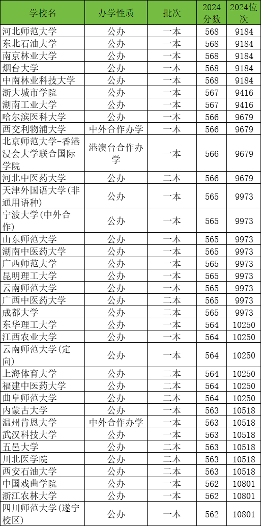 因为招生院校众多,不能展示全部成绩排名对应的大学名单,本文就以文科位次1万名、3万名、5万名,理科位次1万名、7万名、10万名左右能上的大学名单,供2025年考生参考。